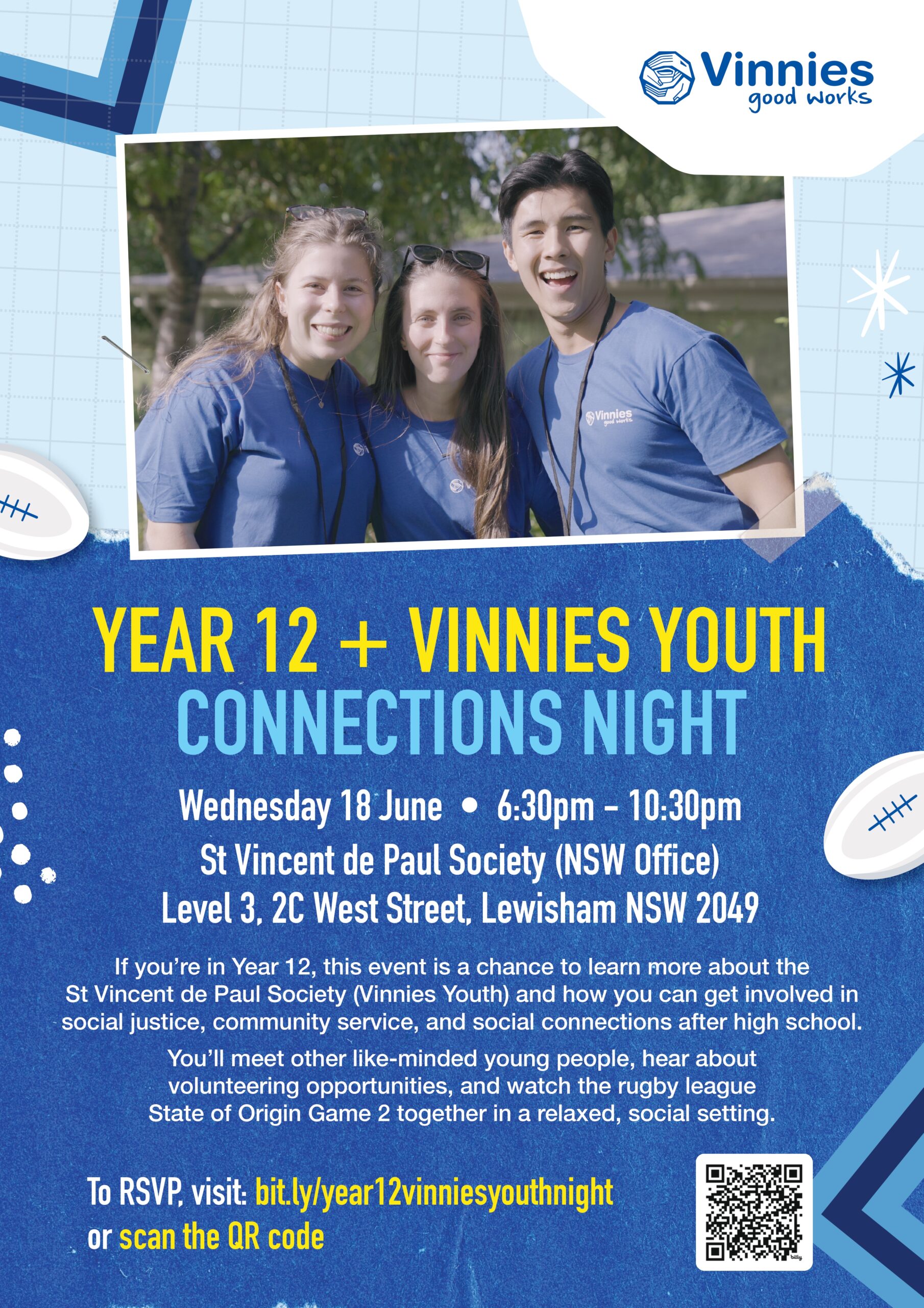 Notice: This event has been cancelled. To learn more about Vinnies Youth, please visit https://youthnsw.vinnies.org.au Register NowGet DirectionsNotice: This event has been cancelled. To learn more about Vinnies Youth, please visit https://youthnsw.vinnies.org.au